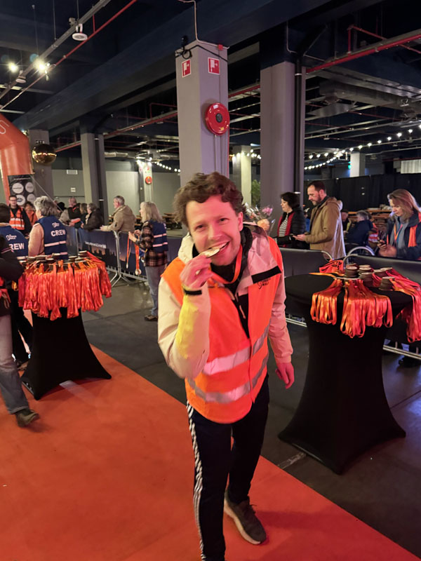 Om 6.30 uur bereikten we de Jaarbeurshal. We werden warm onthaald door de organisatie, met een medaille en applaus van familie en vrienden. De sfeer was geweldig. Richard en Bianca stonden klaar met koffie en het was tijd om even te gaan zitten en alles te laten bezinken.